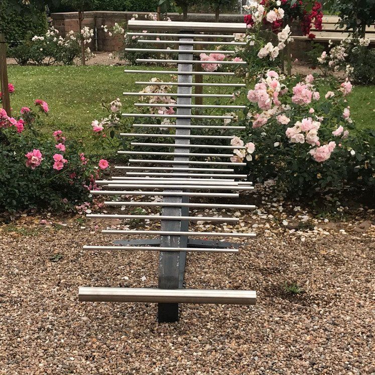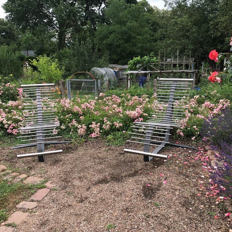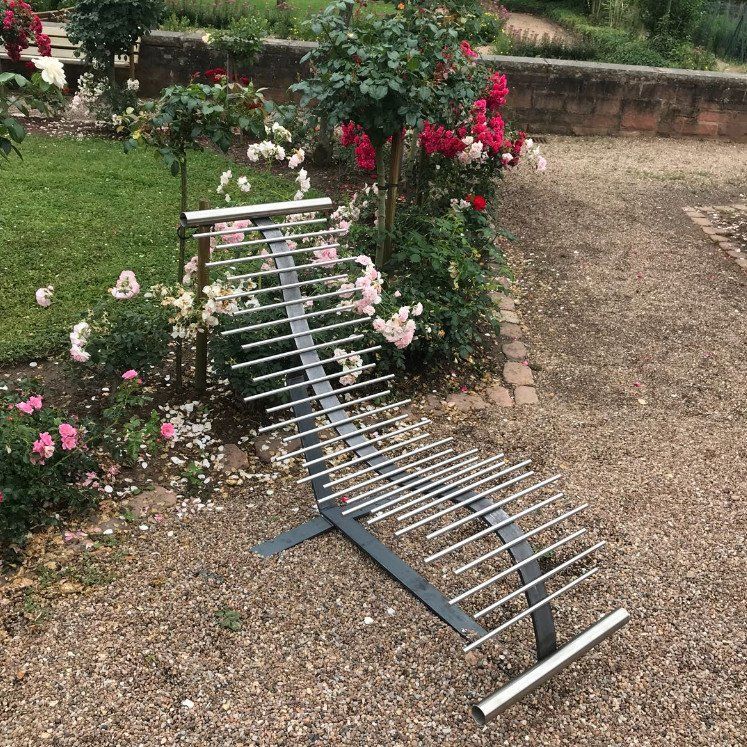 Unsere Liege TESTI Nr. 2 aus Edelstahl fügt sich unaufdringlich in den umgebenden Raum ein und setzt dabei aber trotzdem Akzente.